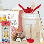 Ce kit bière réunit tous les matériels (sauf les bouteilles) nécessaires pour faire votre première bière à la maison. Chaque élément à été pensé pour vous permettre de réaliser sans problème, et à coup sûr, 11 litres de bière sans devoir investir dans préalablement dans d'autres instruments (le volume produit permet de travailler avec les grosses casseroles et votre cusinière domestique, sans devoir vous équiper de récipient de plus grande contenance).