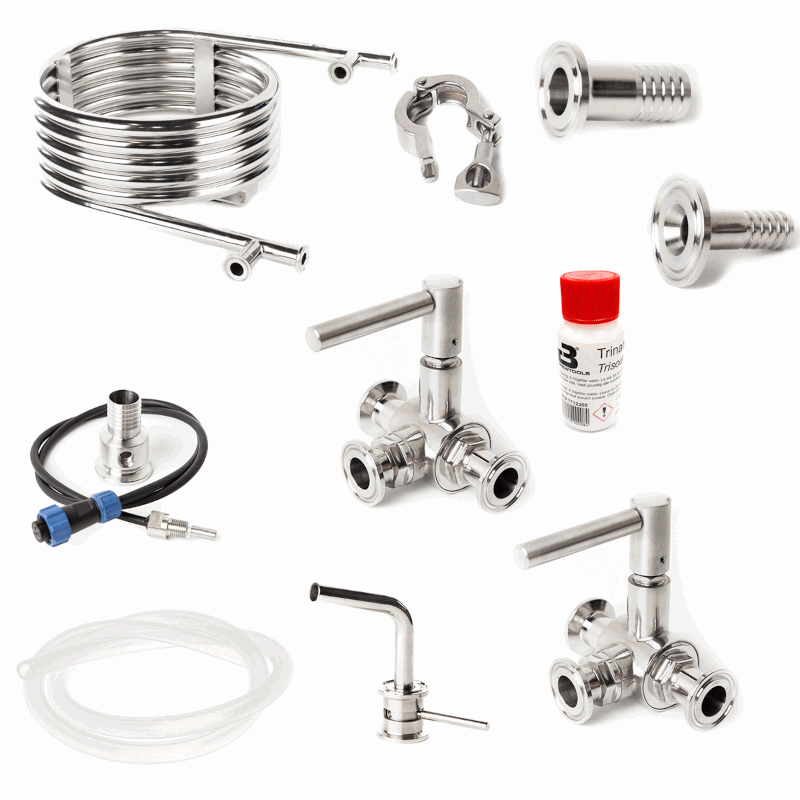 Un troisième capteur (en plus de ceux d’origine sur la station de brassage automatisé) vous donne des mesures exactes de la température du moût en sortie de refroidisseur. Les raccords et accessoires nécessaires sont également inclus.