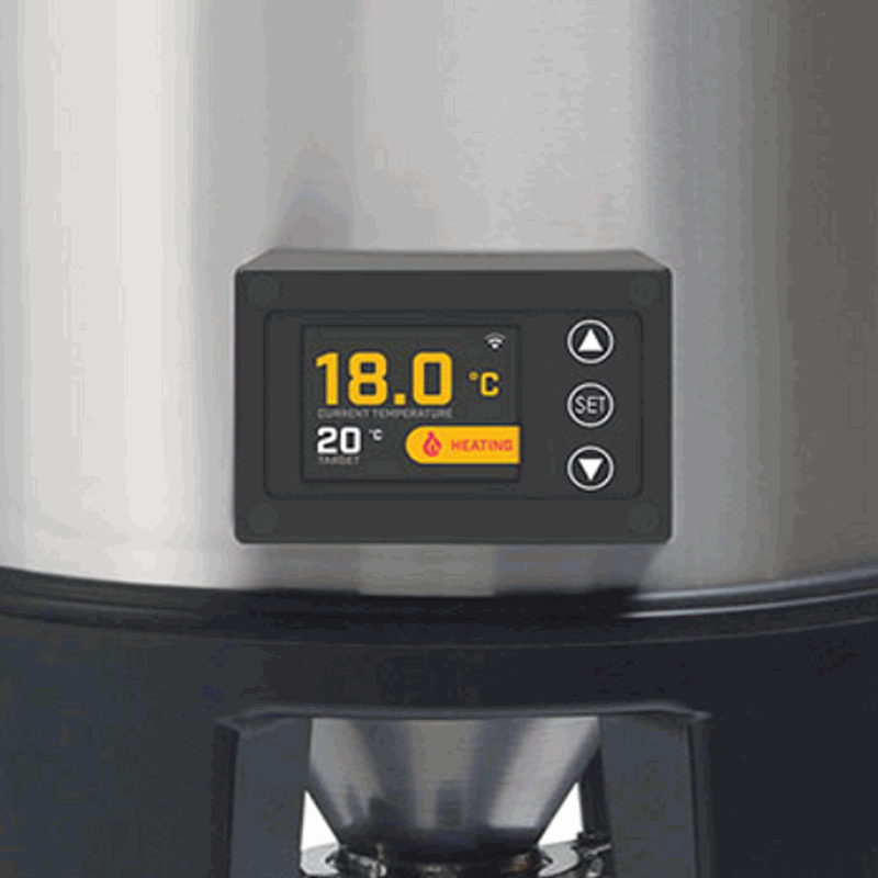 Contrôlez le chauffage et le refroidissement (lorsqu'il est utilisé avec le refroidisseur à gylcol) de votre fermenteur à distance avec le Conical Fermenter Pro Controller. Il suffit de connecter le contrôleur à l'application Grainfather pour contrôler et suivre la température de fermentation lorsque vous êtes en déplacement.