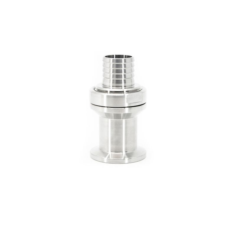 Raccord TC34 mm à porte-tuyau 19 mm avec filetage et écrou d'épaulement M28 x 1,5. Permet, par exemple, de le fixer au travers d'une paroi inox.