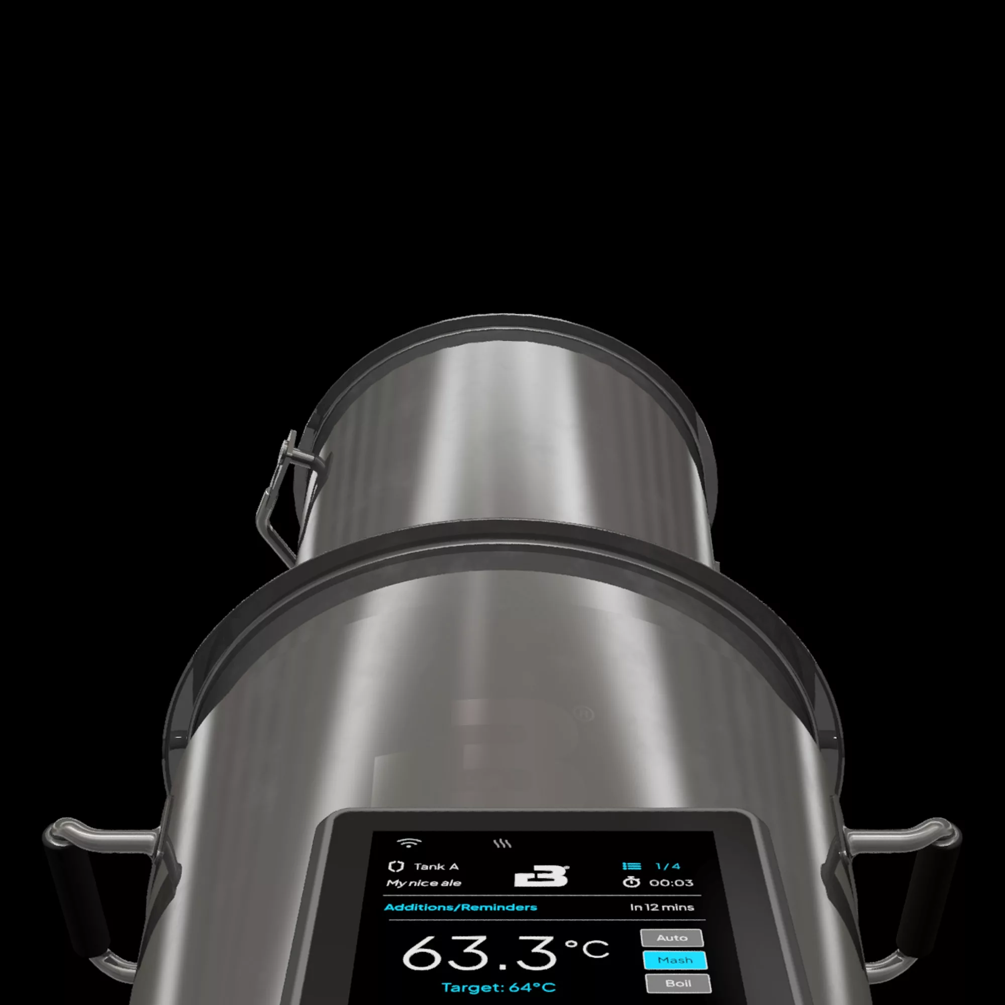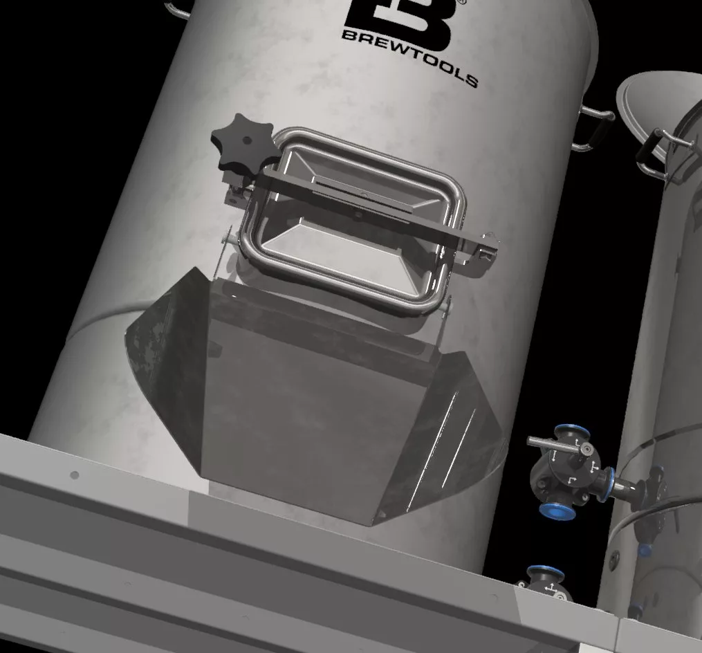 - Possibilité d’utiliser un mash tun externe empilable posé sur le dessus du système pour augmenter la capacité de grain et faciliter les brassins à haute densité.