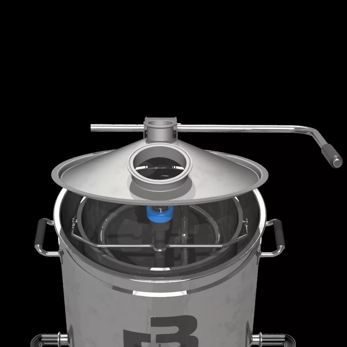 - Un fond conique à 10 degrés pour faciliter le nettoyage et la vidange, à l’exception du B25 qui a une géométrie différente.